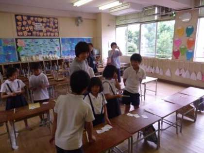 わりばしでっぽうで、的あてゲームを楽しみました。