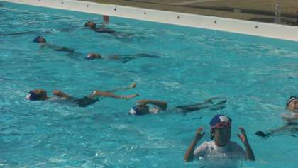 1・2年生、初めての着衣水泳です。体操服を着て、水の中に入ります。服が体にまとわりつき、思い通りに動きにくいことや、いつもの水泳学習のときより体が重く感じ、体力を使うことを実感できました。また、ペットボトルを使い、体が浮くことも体験しました。もうすぐ始まる夏休み。川や池やなどで遊ぶこともあるかと思います。水遊びは、必ず保護者の方と行っていただき、安全に楽しんで下さいね。