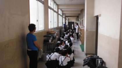 その後、3次避難。4階の廊下や教室まで避難しました。