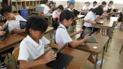 今日4年生と6年生がタブレットを使うための練習をしました。タブレットの基本的な操作方法や使う時のお約束、カメラの使い方、お絵かきなどの機能を体験しました。これから授業などで取り入れていく予定です。