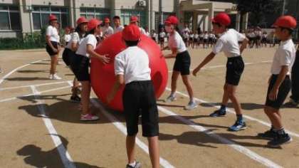 運動会当日は、赤が勝つのか、白が勝つのか(^_-)-☆