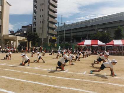中学年の団体演技「Share happi」です。かっこいいダンスにリストバンドがぴったりでした。