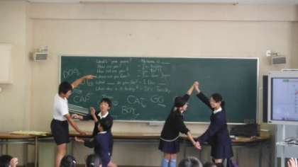 今日の5年生の外国語活動のゲームはアルファベットクイズをしました。体で文字を表して、単語をつくりました。子どもたちはどうすれば上手く表せるか一生懸命取組んでいました。みなさんは何の単語かわかりますか?