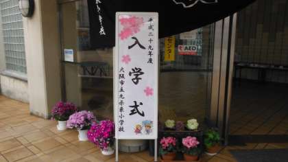 18名の1年生が誕生し、6年生が一人一人手をつないで、教室まで案内しました。
