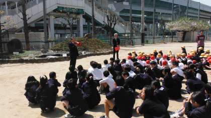 4月13日(木)に火災による避難訓練を行いました。みんなハンカチを口に当て、素早く安全に避難することができました。集まってからも校長先生のお話を真剣に聞いていました。