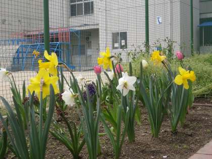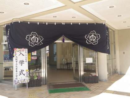 玄関の桜や学習園の花々に見守られて、4月7日に32名の1年生が入学しました。玄関で6年生のお兄さん、お姉さんたちに名札をつけてもらいました。入学式では、しっかりあいさつをすることを校長先生と約束しました。そのあと、2年生の歓迎の言葉や歌を聞きました。