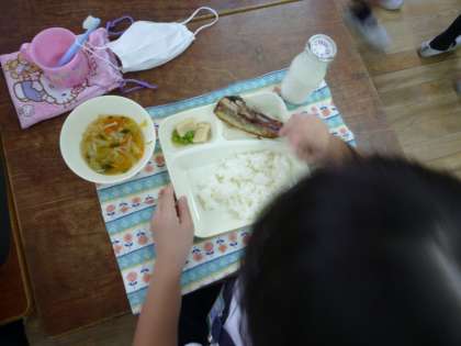 ひとり1切ずつ、骨付きの登場に苦労した子は多かったようですが、「おいしい!」の声をたくさん聞くことができました。