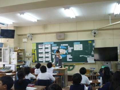 11月7日(火)6時間目、4年1組で「魚について知ろう」という栄養指導をおこないました。