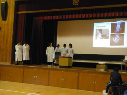 児童集会 健康委員会「わたしたちの手あらい、失敗しないので」