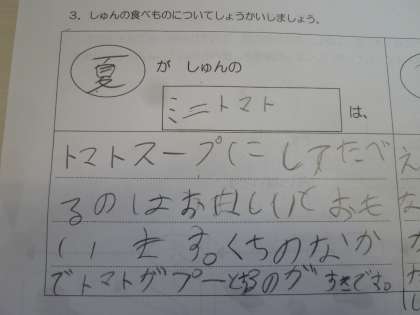 そして、ひとり2つずつ食べものを選び、その良さを紹介する文章を考えました。