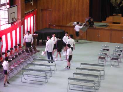 今朝は新6年生が会場の設営準備のために登校してくれました。新2年生も「児童歓迎の演技」のリハーサルをしっかりとおこない、明日の本番に備えてくれています。教職員全員で学校全体の準備を終え、いよいよ明日、新1年生をお迎えするばかりです。