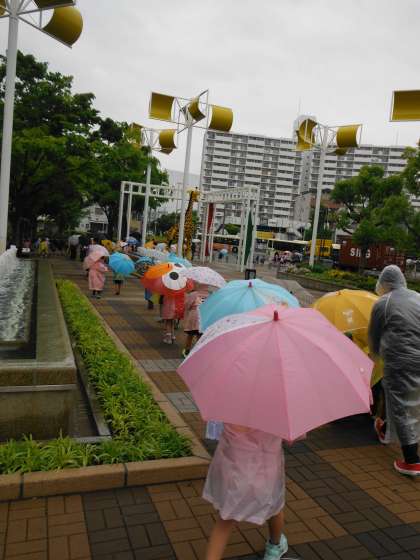 帰りはあいにくの雨模様でしたが、みんな、しっかりと並んで