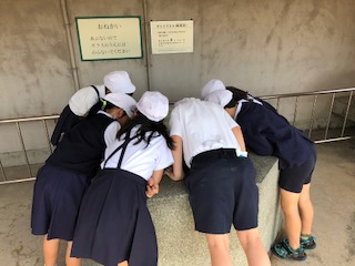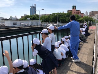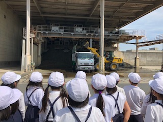 実験が終わるといよいよ施設の見学です。広い敷地にいろいろな機械があり、ていねいに説明してくれました。子どもたちは夢中になってそれぞれの施設を見学をしていました。