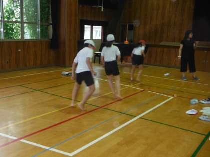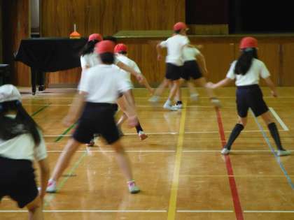 写真は上から、「上体おこし」(1年生)、「反復横とび」
