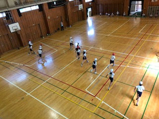 4年生がシャトルランをしました。音に合わせて20メートルのコースを行ったり来たり、頑張りました。最高記録は65回でした。