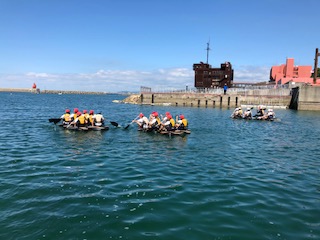 それぞれ、いかだにまたがって、海に漕ぎ出しました。