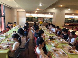 しっかり食べて、キャンプファイヤーにそなえます。