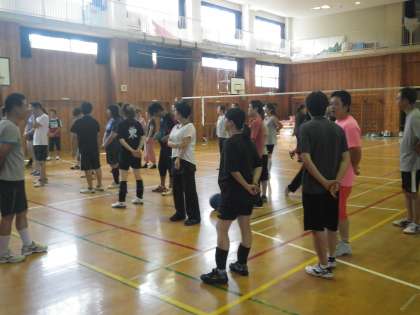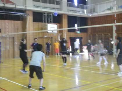 日曜参観日の午後、講堂でPTA親善バレーボール大会が行われました。1年から6年生までの各学年の保護者チームとPTAOBチーム、教職員チームの計8チームで親睦を深めました。