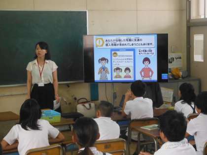 5年生がスマホ・ケータイ安全教室を行いました。スマートフォンや携帯電話を安全に使う方法を教えてもらいました。
