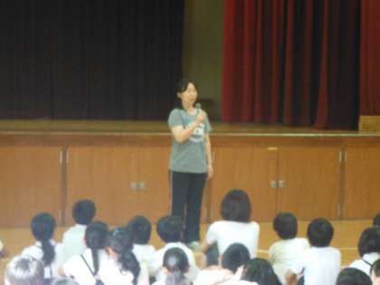 学校長からの訓話の後、竹中先生から7月の生活目標についてお話がありました。