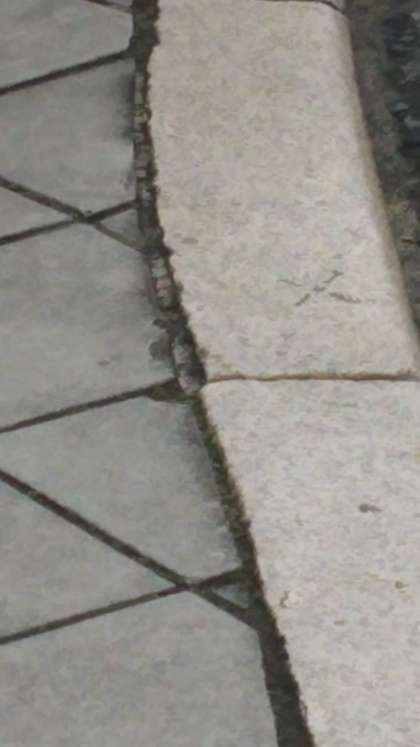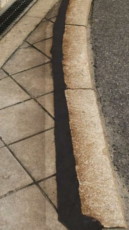 ※左の写真が補修前の歩道、右の写真が補修後です。歩道の左側に正門があり、右側は車道です。