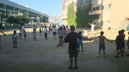 たくさんの子どもたちが元気に運動場に集合しました。参加者にはジュースも配られました。今月末まで毎日行います。ご家族のみなさんもぜひご一緒にどうぞ。みんなで早起きしよう!!