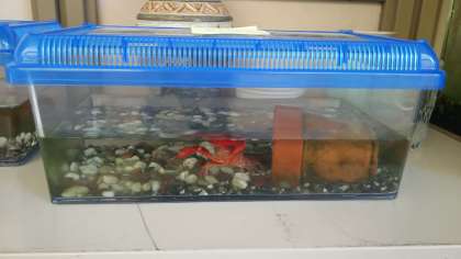 下の写真は2年生がお世話をしているザリガニ(レッドちゃん)です。レッドちゃんも早起きです。グリーンちゃんとパープルくん、ブルーくんも元気です。