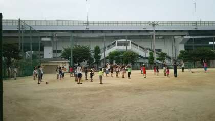 今朝のラジオ体操の風景です。今日もたくさんの子どもたちが集まってくれました。早朝はやや涼しかったですが、日中は暑くなりそうです(日中最高予想気温は36度)。子どもたちの日焼けがずいぶんと目立ち、夏休みらしくなってきましたが、引き続き水分補給と休憩をしっかりと取り、熱中症には注意しましょう。