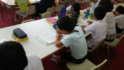 本日の午前中のプール開放・水泳指導と午後の図書館開放・自主学習教室の風景です。四日間でたくさんの子どもたちが参加してくれました。両方とも明日が最終日です。