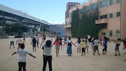 今朝のラジオ体操の風景です。今日もたくさんの子どもたちが元気に参加してくれました。いよいよ明日は最終日です。途中参加も全然大丈夫ですので、みなさん、早起きしましょう!
