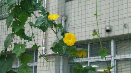 下の写真は5年生が学習園で育てているヘチマの花です。毎日、朝の時間にきれいな黄色い花を咲かせています。