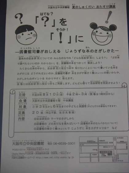 【大阪市立中央図書館】夏のしゅくだい おたすけ講座