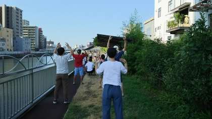 今週月曜日から千代崎地域におきまして、恒例の「夏休みラジオ体操」が「アドプトリバー千代崎」にて午前7時30分より開催されています。明日が最終日になります。