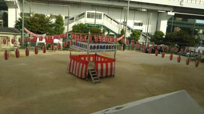 今日は天気が少し心配でしたが、予定通り19時から盆踊りが始まります。