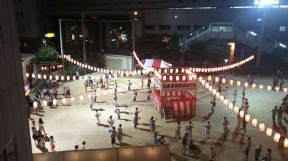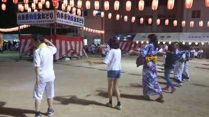 踊りの輪が二重、三重になってきています。今、話題の「ダンシングヒーロー」も何度もかかっています!!
