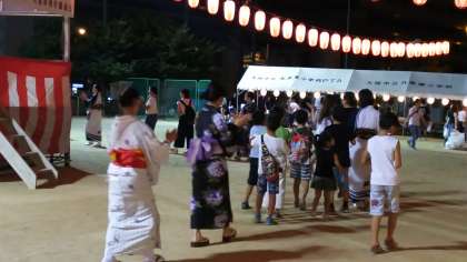 子どもたちはお菓子をいただいて、家路につきました。その後、数曲踊った後、今年の盆踊りは終了しました。地域の皆様、PTAの皆様、本当にお疲れ様でした。ありがとうございました。
