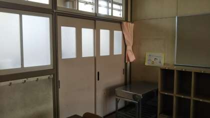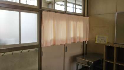 3年から6年教室の出入口と児童更衣室にカーテンを設置しました。