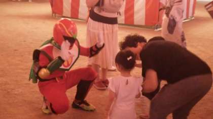 九条東納涼盆踊りで子どもたちに大人気だったヒーローは昨夜と今夜、「九条北納涼盆踊り」でも子どもたちと楽しく踊ってくれています。昨夜、校長先生と名刺交換をしました。ヒーローの名は「トマト刑事 トマティーン」です。盆踊りを盛り上げてくれて、本当にありがとうございました。