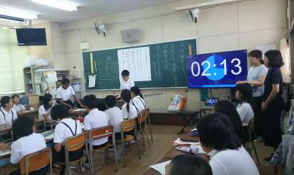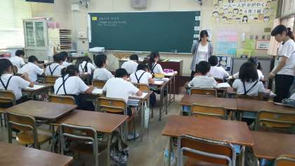 写真は上から4年生・算数(習熟度別授業)、5年生・国語(討論)、6年生・図画工作の授業風景です。