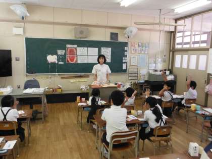 昨日の午後、歯科校医の河野先生と大阪市教育委員会の歯科衛生士2名に来校いただき、2年生と4年生、6年生に歯と口の健康に関する指導をしていただきました。(年に一回、偶数年次の児童に授業・指導を行っています。)
