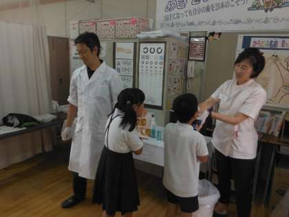 本校では、お昼の給食時間の最後に「はみがきタイム」を設けており、毎日、健康委員会が校内放送をしてくれています。今回は、去年よりも歯垢の付着具合は改善しているそうです。引き続き、ご家庭でも、特に寝る前の歯磨きを一本づつ丁寧に磨くように指導願います。