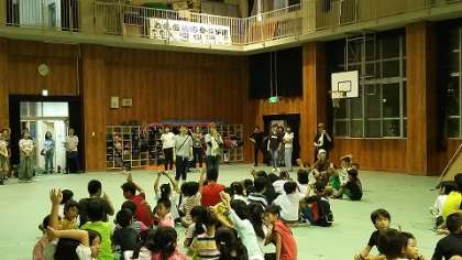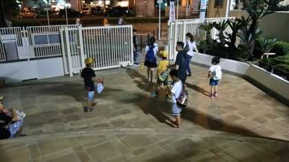 ひやひやどきどきの肝試しが終わり、宿泊する4年生以外はお菓子をもらって、保護者の方と一緒に帰宅しました。