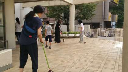 ※写真は後片付けの様子です。閉会式後、一時間で段取り良く、使用前よりもきれいにしていただきました。お疲れ様でした。