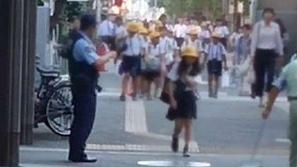 おはようございます。今朝も警察官の方々に子どもたちの見守り活動を行っていただきました。特に危険な銀行前の交差点では、自転車一台一台に目を配っていただき、丁寧に注意喚起を行っていただきました。今日で四週間目になります。本当にありがとうございます。