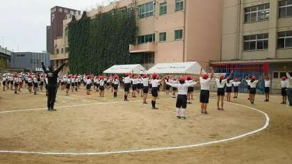 本日〔10月12日(金)〕の1校時、二回目の全体練習を行いました。「開会式」と全学年で行う「はじめの体操」、「大玉送り」の練習を全員で元気よく、しっかりと行いました。