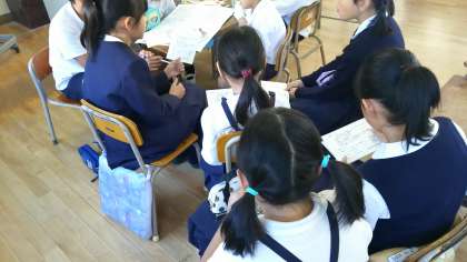 本日の2校時、たてわり班で24日(水)の服部緑地公園でのたてわり遠足の会議をしました。まず、班のめあてを決めて、各チェック項目での内容(例:何の歌を歌うか、どんなダンスを踊るか等)を相談しました。オリエンテーリングですので、チームワークがポイントです。楽しい遠足になりそうです!