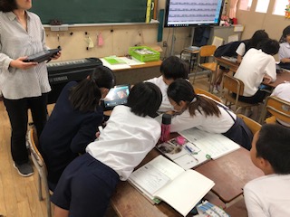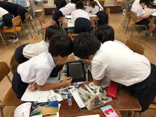 5年生、理科の学習です。前回流れる水のはたらきを調べる実験の様子をタブレットで撮影しました。実験の結果を振り返るため動画を見ながら確認しました。土が削れたり、たまったりする様子がよく見えました。