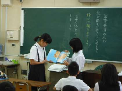 今朝、図書委員の子どもたちが各学年のことや季節のことを踏まえて絵本を選び、各学年の教室で読み聞かせを行ってくれました。みんな、静かに集中してお話をよく聞き、とても楽しい読み聞かせ会でした。
