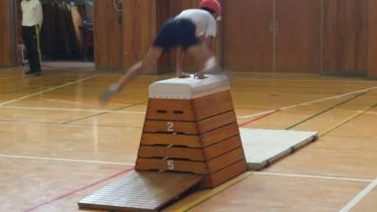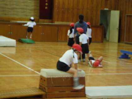 今週の体育の授業風景です。写真は上から6年生、4年生、1年生です。いずれも跳び箱を使う授業ですが、子どもたちの成長に合わせて授業内容が大きく変わっていきます。