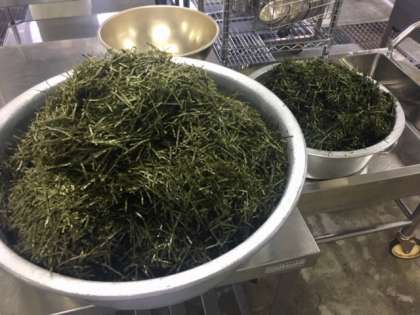 調理中、給食室いっぱいにのりの香りが広がり、黒く光った艶やかなつくだ煮になりました。